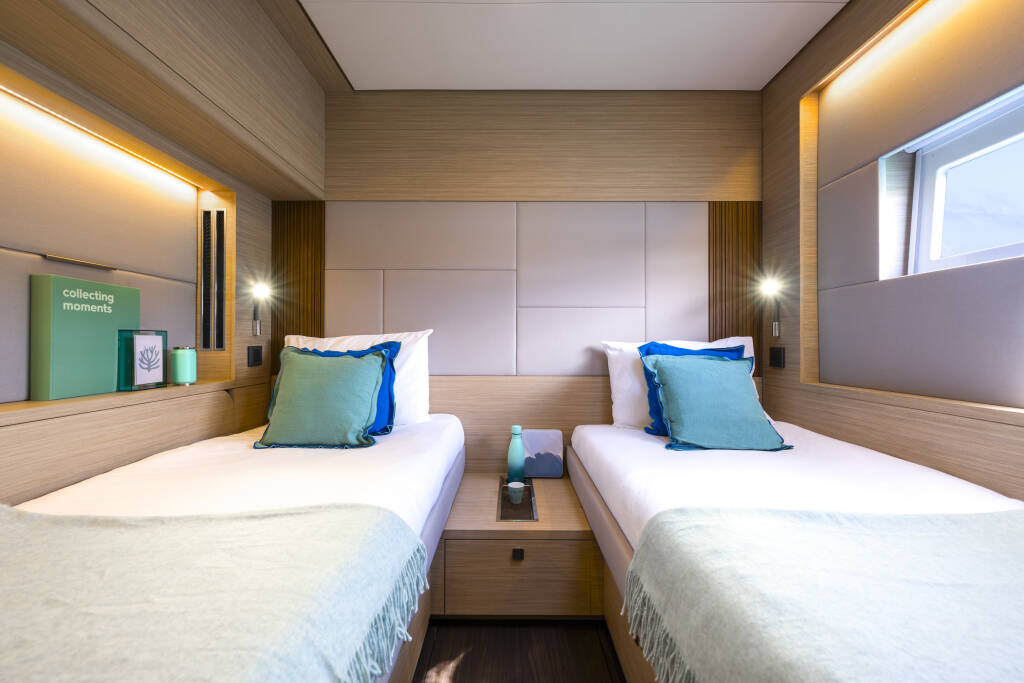 Il Catamarano (Lagoon 60) - lunghezza 19.77 m - larghezza 9.87 m – viene proposto nella base di PA Castellammare del Golfo. E' dotato di 5 cabine e 5 bagni e può ospitare 10 persone. E' motorizzato con ed è fornito di un serbatoio acqua dolce di l. 960
