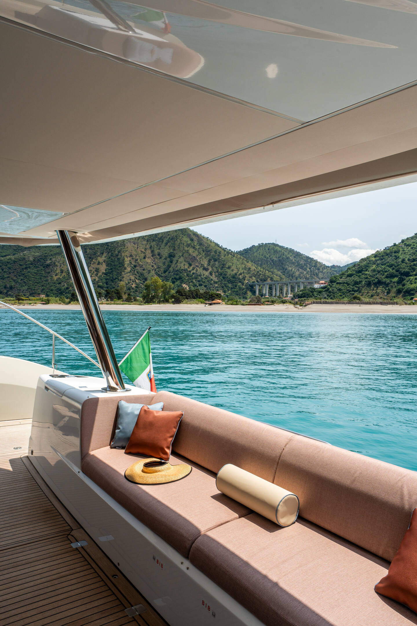 Cushions in aft, forward and flybridge
