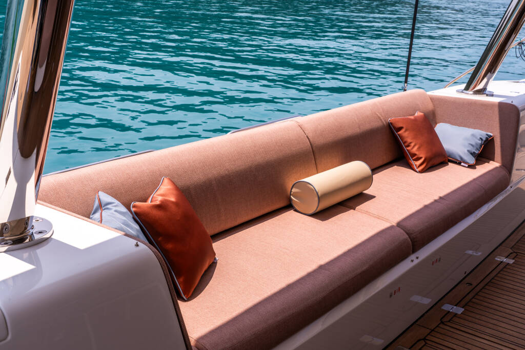 Cushions in aft, forward and flybridge